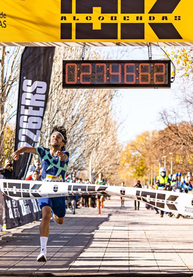 En el km9 y ya llegando a la zona de Arroyo de la Vega, Fernando Carro se encontraba por debajo del crono pero muy justo. Tenía que apretar, él sabía que tenía que darlo todo, y así fue, apretó los diente y con su tremendo final consiguió batir la mejor marca española de 10k de todos los tiempos. Nada más entrar en meta estaba exhausto, apenas podía respirar y lo primero que hizo fue ponerse la mascarilla, increíble lo de Fernando, lo había conseguido, volvía hacer historia y esta vez en el 10k de Alcobendas. Cerraron el pódium Jorge Blanco (27:51) y Jesús Ramos (27:56). 3 atletas españoles sub28.